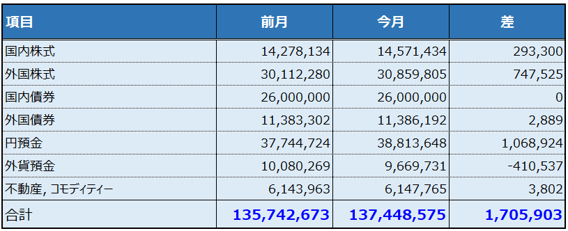今月も遅くなりましたが、以下が7月末での資産状況です。